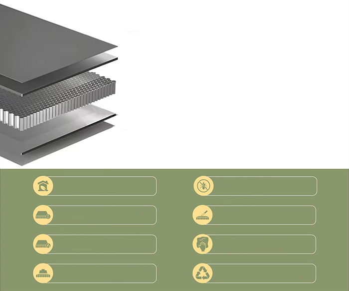 الكثافة 2.8-3.5 جم/سم3 (الهيكل المركب للوحة الأساسية على شكل قرص العسل من الألومنيوم)