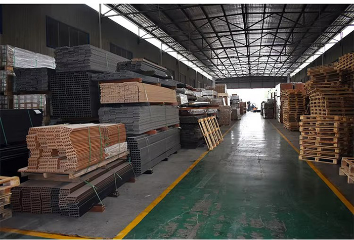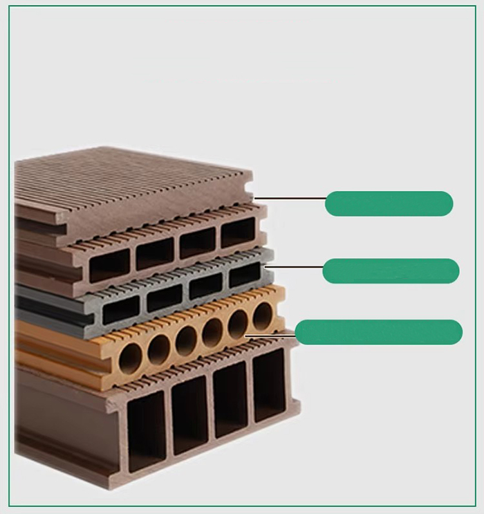 خلط الركيزة ألياف الخشب (50-60%) راتينج PVC (30-40%) طبقة ألياف الكربون المضادة للتآكل (5-10%)، إضافة هيدروكسيد الألومنيوم مثبطات اللهب لتحسين الدرجة A2.