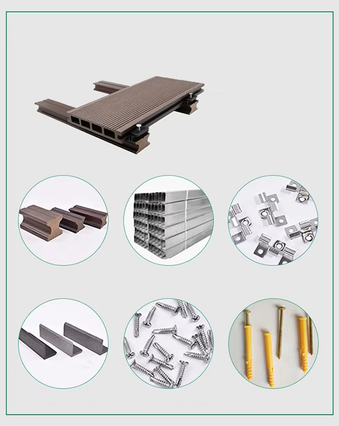 المواد ألياف الخشب/ألياف الخيزران راتينج PVC مثبطات اللهب/مسحوق كربونات الكالسيوم (اختياري) طلاء السطح (نقل الحبوب الخشبية/الأشعة فوق البنفسجية)