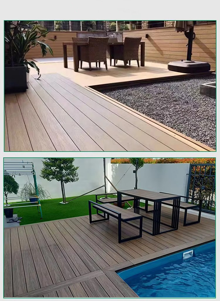 أرضية WPC (مركب الخشب والبلاستيك) هي نوع جديد من الأرضيات الصديقة للبيئة المصنوعة من ألياف الخشب أو ألياف الخيزران كمواد خام أساسية، بالإضافة إلى راتينج PVC، ومثبطات اللهب، وما إلى ذلك من خلال عملية درجة الحرارة العالية والضغط العالي. ينقسم هيكلها إلى أربع طبقات: طبقة مقاومة للاهتراء (طلاء للأشعة فوق البنفسجية)، وطبقة زخرفية من حبيبات الخشب/الحبيبات الحجرية، وطبقة مادة أساسية معززة بالألياف وطبقة صامتة. إنه يتميز بملمس الخشب الحقيقي وأداء البلاستيك المقاوم للماء والرطوبة، وهو مناسب لتزيين الأرضيات ذات المشهد الكامل الداخلي والخارجي.