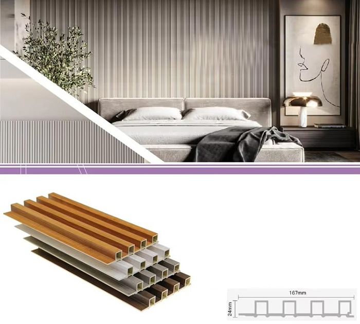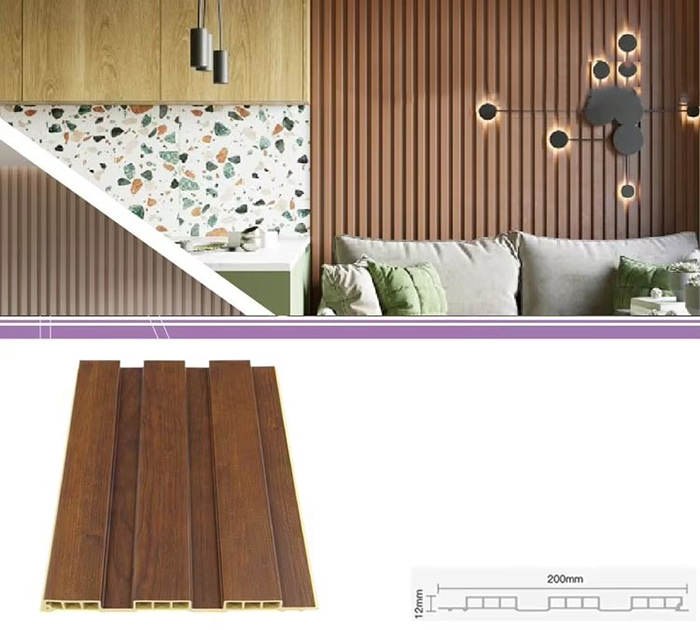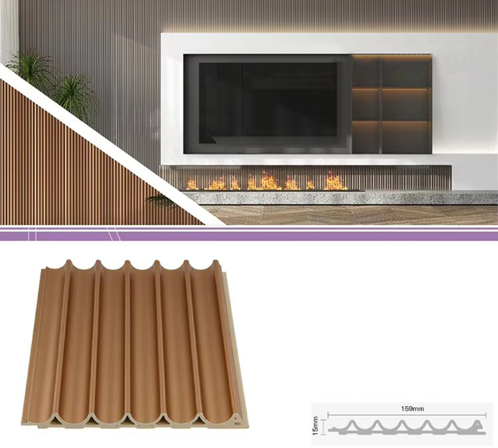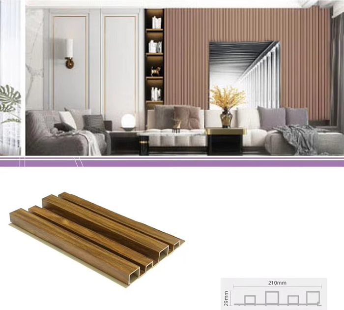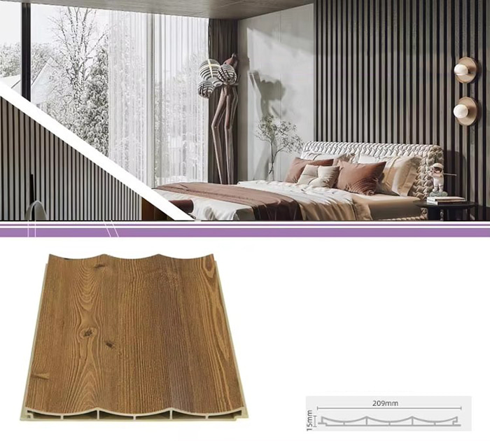 الألواح الداخلية WPC، أو الألواح الداخلية المركبة من الخشب والبلاستيك، هي نوع جديد من مواد البناء الصديقة للبيئة المصنوعة من ألياف الخشب أو مسحوق الخشب مع اللدائن الحرارية (مثل البولي إيثيلين أو البولي بروبيلين أو كلوريد البولي فينيل). يتم تصنيع هذه المادة من خلال عملية قولبة بالبثق بدرجة حرارة عالية، وعادة ما يتم تزيين السطح بالتصفيح أو الطباعة ثلاثية الأبعاد أو تصفيح الفيلم، مما يظهر ملمسًا طبيعيًا وملمسًا مشابهًا للخشب، مع التمتع أيضًا بمتانة البلاستيك ومقاومته للعوامل الجوية. لا تتميز الألواح الداخلية WPC بمظهر الخشب الجميل فحسب، بل تتغلب أيضًا على عيوب الخشب مثل التشوه السهل وامتصاص الرطوبة والتحلل، مما يجعلها مادة ديكور داخلية مثالية