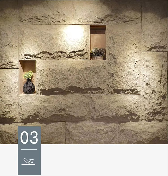 الجدار الداخلي للمبنى: مناسبة لتزيين الجدران الداخلية للسكن، والمكاتب، والمساحات التجارية، وما إلى ذلك، والتي يمكن أن تعزز الملمس العام للمساحة.