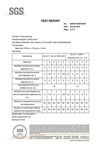 اختبار الحريق: معيار GB 8624، مثبطات اللهب B1. عملية صديقة للبيئة تعتمد تركيبة صديقة للبيئة خالية من الرصاص والكادميوم، كما يعمل نظام تبريد المياه المتداول أثناء عملية الإنتاج على تقليل التلوث.