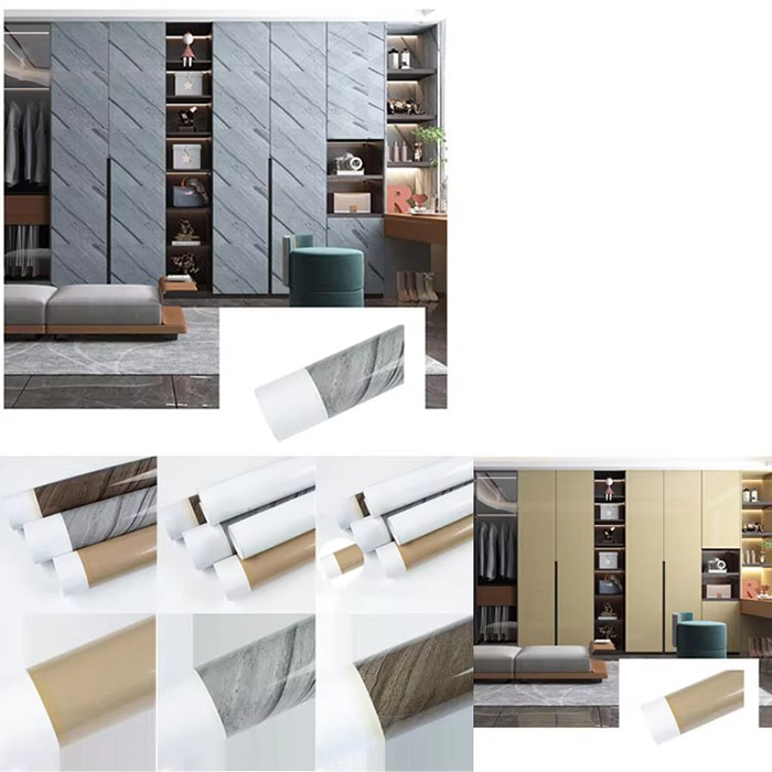 أثاث الألواح: حبيبات الخشب المقلدة وقشرة الحبوب الحجرية (مثل البلوط والجوز والملمس الرخامي) لتعزيز القيمة المضافة للمنتج.